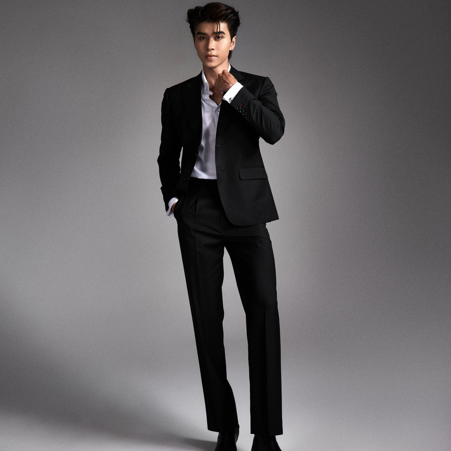 Minh Nhật và bộ suit đen được may từ dòng vải Cavani 100% Wool, một lựa chọn dành cho người đàn ông đang bước vào giai đoạn rõ ràng hơn của cuộc đời: biết mình là ai, cần gì và muốn tạo dấu ấn gì sau mỗi lần xuất hiện.